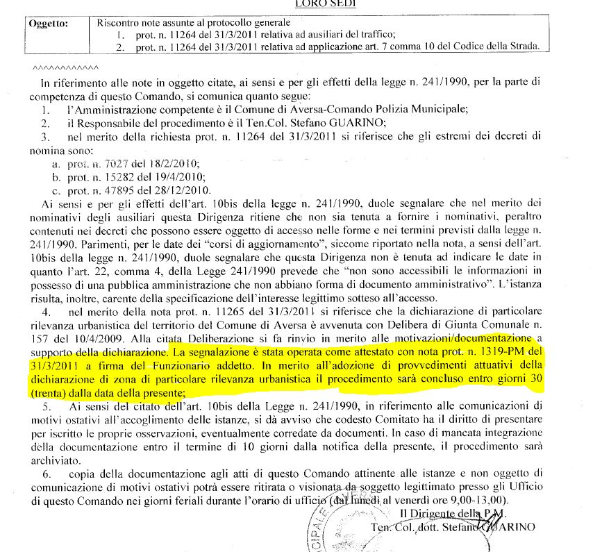 Purtroppo i cittadini sono costretti a far valere i propri diritti in sede giudiziaria o a mezzo del Prefetto, visto che il Sindaco Ciaramella sempre prontamente informato di tutti gli illeciti non ha mai voluto prendere nessun provvedimento, ma l’alto costo del bollo per presentare ricorso innanzi al G.d.P. ha fatto preferire l’alternativa del Prefetto, nonostante il rischio di vedersi raddoppiata la multa in caso di rigetto.
