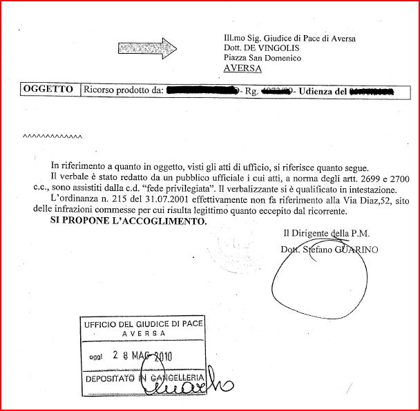 Con somma sorpresa scopre che è lo stesso comandante Guarino a costituirsi in giudizio, dichiarando con una nota scritta, che i ricorsi vanno accolti in quanto via Diaz effettivamente non rientra nella sosta a pagamento.