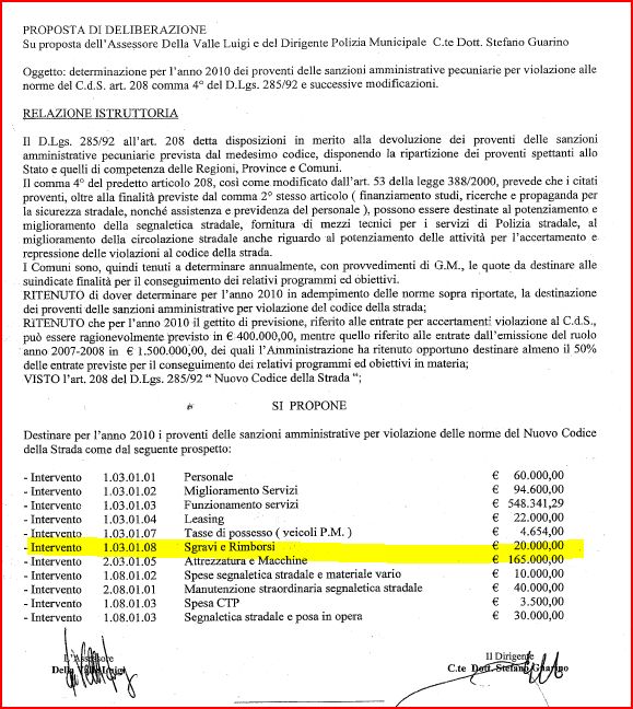 Ovviamete perdere un causa del genere per l’amministrazione ha un costo non indifferente, ma il Comandante Guarino ha pensato di reperire questi fondi dagli introiti derivanti dalla sosta a pagamento, cosa ovviamente illegale perchè non prevista dall’art. 208 del C.d.S.