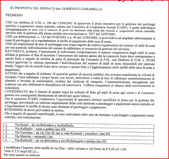 Pubblichiamo la delibera alla quale fa riferimento l’O.S. 215 del 31.07.2001, per permettere a chi avesse ricevito un vebale di controllarne la regolarità.