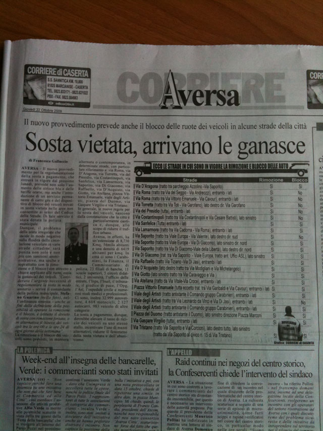 hai proprio ragione…infatti dopo aver ricevuto la multa non penso proprio di ritornare mai più ad aversa. Il problema non era la multa perche in effetti avevo parcheggiato in divieto di sosta ma la cifra esorbitante ( 84 euro!!! ) da pagare alla smart project….E davvero non ne capisco il motivo.