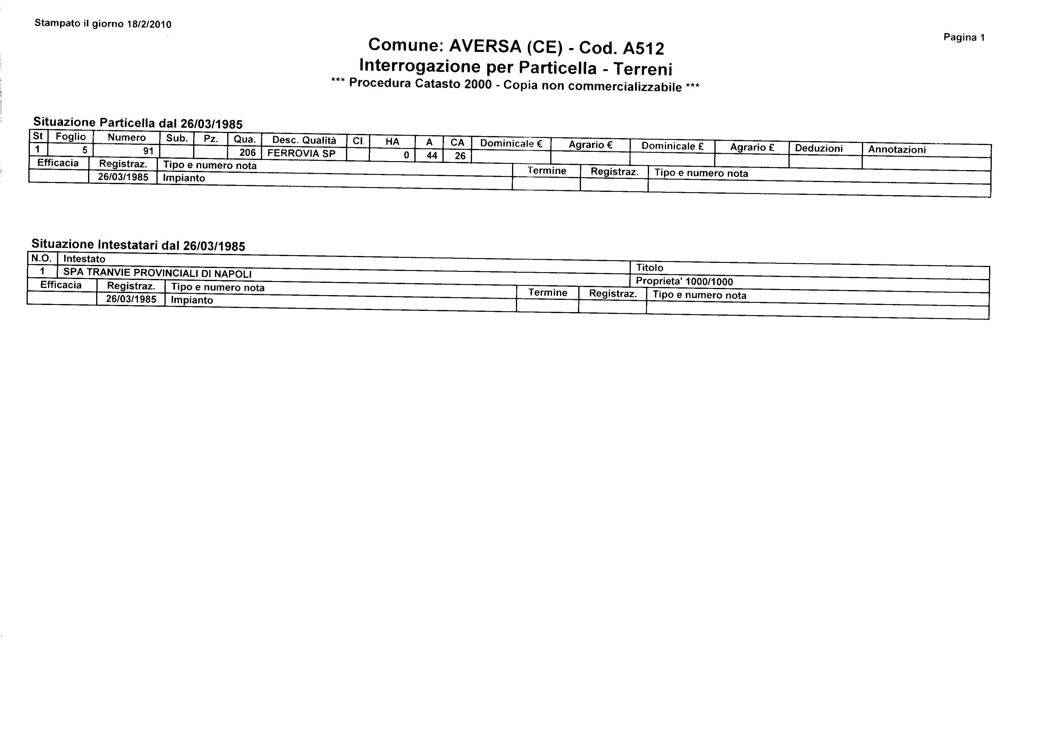 Dai documenti catastali lo spazio in questione è della società tranvie provinciali di Napoli è non esiste nessun documento di concessione al Comune di Aversa.