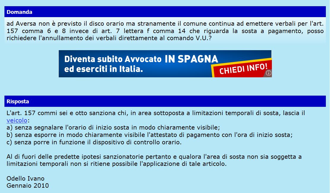Con questi dati eravamo convinti quasi al 100% delle nostre ragioni, ma per fugare qualsiasi dubbio abbiamo provveduto ad inoltrare il quesito anche all’associazione vigileamico raggiungibile su internet all’indirizzo www.vigileamico.it, questa associazione è formata da agenti appartenenti ad organi di Polizia che rispondo ai quesiti dei cittadini in merito al C.d.S, quindi chi meglio di loro può chiarirci le idee.