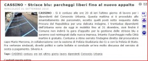 A Cassino dopo le denunce del Comitato Civico le Contrade, per i sospetti di truffa che si celavano dietro la gestione della sosta a pagamento, la società di gestione Urbania è stata mandata a casa dal 01/09/2010.