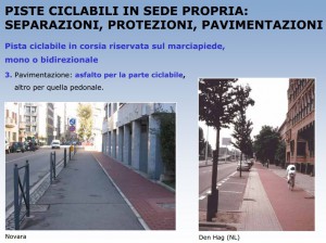 La mobilità sostenibile passa anche attraverso progetti per la realizzazione di percorsi ciclabili, spesso però capita che questi progetti servono solo a sperperare i soldi pubblici visto che la realizzazione delle piste ciclabili risulta spesso difforme da quanto previsto dal D.M. n° 557 del 30 novembre 1999.