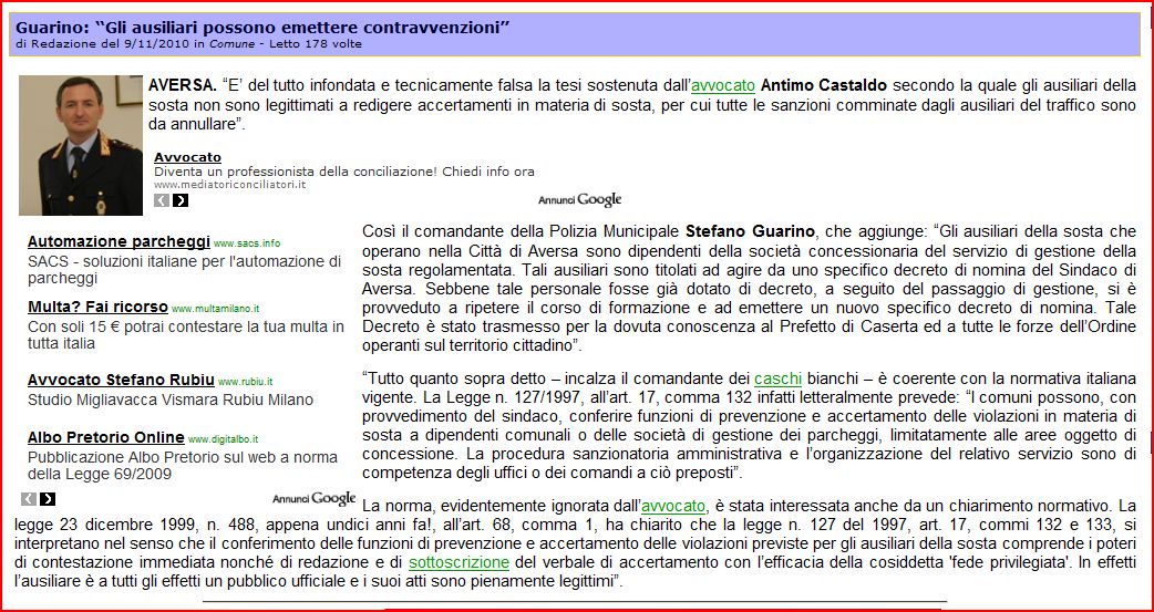 Il primo questito posto al Capitano Antonino è stato quello sulla validità delle multine che gli ausiliari del traffico elevano a migliaia, solo ad Aversa nel 2009 ne sono state elevate 9.800, vediamo la risposta.