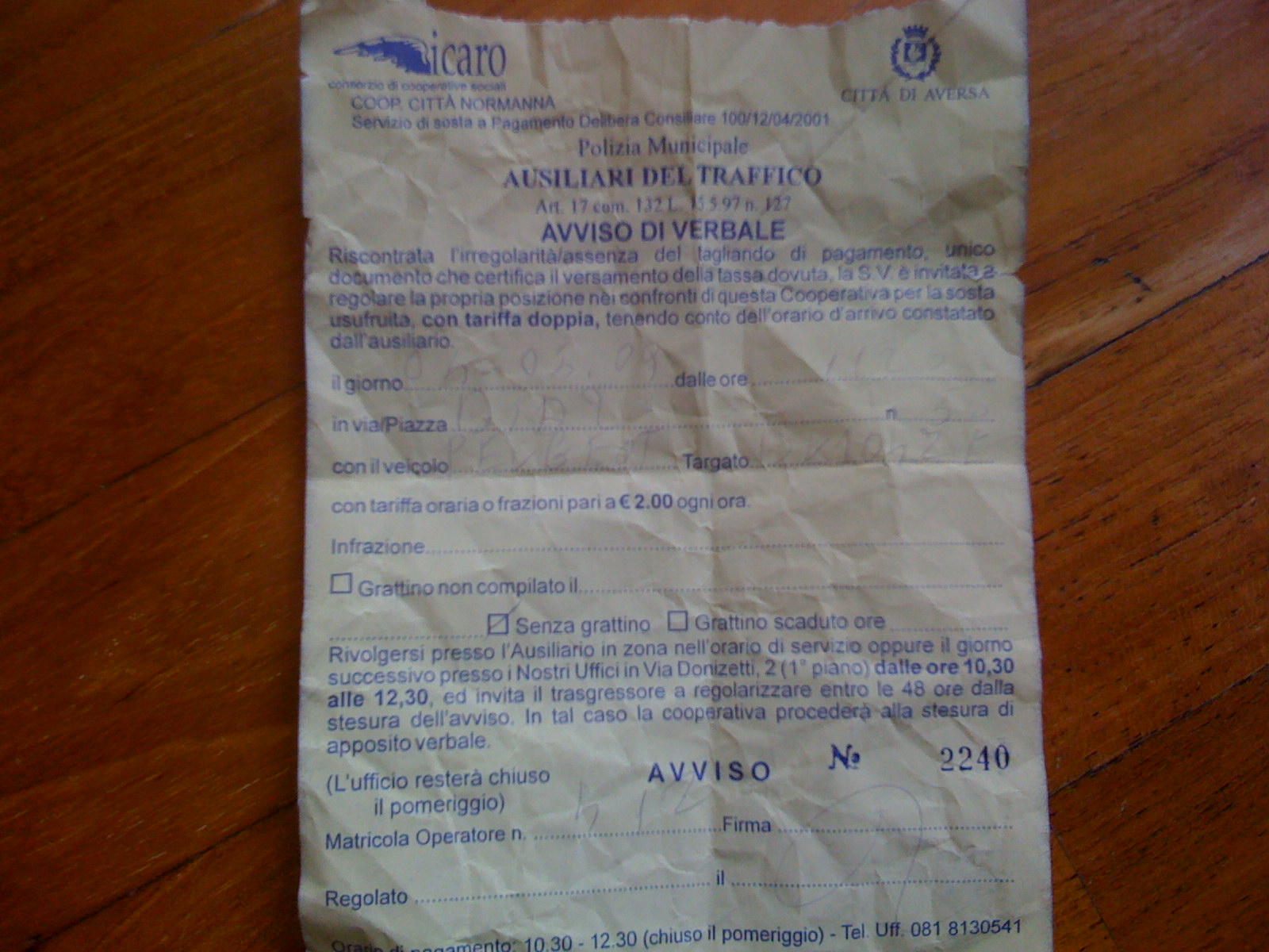 Ma di esempi assurdi c’è ne sono migliaia giusto ieri nella puntata di striscia la notizia è andato in onda un servizio sulle strisce blu a Napoli, nel quale si evidenziava come le strisce blu erano spuntate intorno allo stadio S.Paolo in una zona dove fino a pochi giorni prima i vigili urbani hanno elevato contravenzione per sosta in zona pedonale e dove gli stessi cartelli di zona pedonale ci sono ancora, questo a parere mio si chiama rapina autorizzata.