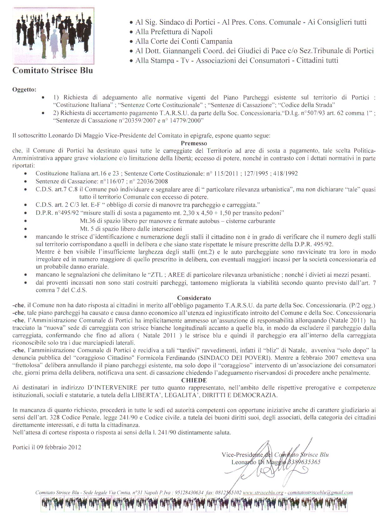 • 1) Richiesta di adeguamento alle normative vigenti del Piano Parcheggi esistente sul territorio di Portici : “Costituzione Italiana” ; “Sentenze Corte Costituzionale” ; “Sentenze di Cassazione”; “Codice della Strada”