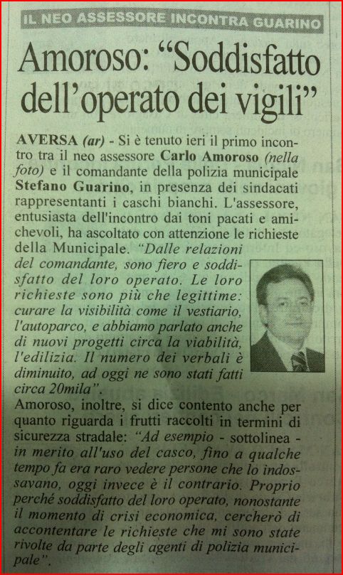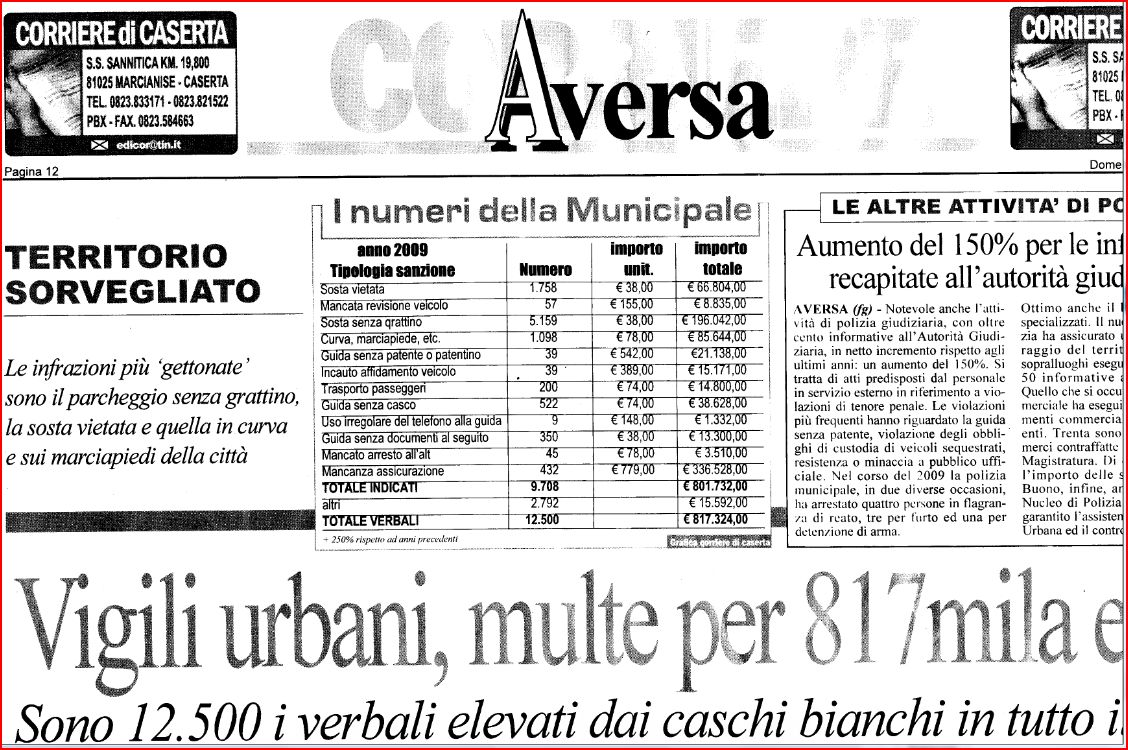 Aversa: verbali 2011 a quota 20.000 contro i 12.500 del 2009 ma Amoroso dichiara “i verbali sono diminuiti”.