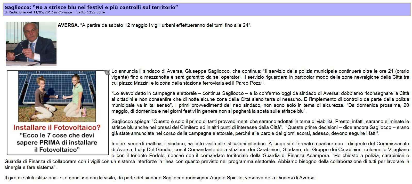 Il Comitato Strisce Blu mette in guardia il neo Sindaco di Aversa Giuseppe Sagliocco su azioni spot nella gestione delle strisce blu.